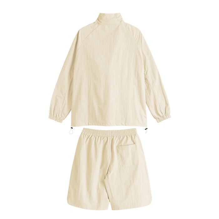 軽量で動きやすいナイロンセットアップ。